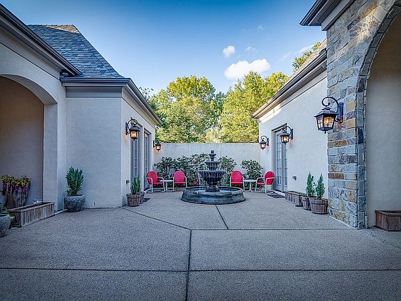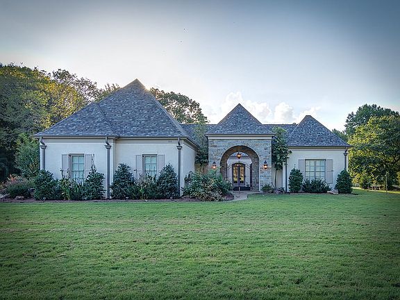 Come home to this pristine, move-in-ready Collierville beauty in prestigious Snowden Farms! The European fountain in the courtyard welcomes you to the main & separate guest house. Relax in the backyard overlooking the private, stocked pond. Enjoy the versatile floor plan, all on one story! Enormous theater/media room could be a fourth bedroom. Open, state of the art kitchen with all the bells & whistles. Such a gorgeous space to entertain all family & friends inside and outside!