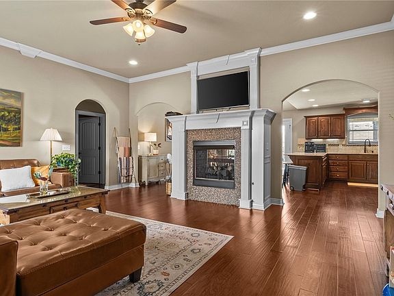 This charming home in Cave Springs has been meticulously maintained and cared for. It features a spacious, single-level layout with a thoughtful split floor plan. The master suite offers a private ensuite with a luxurious jacuzzi tub and a walk-in shower. The master closet conveniently connects to the laundry room for added functionality. The kitchen is perfect for cooking and entertaining, with plenty of counter space and room for guests. A double-sided fireplace adds warmth and character to the living and dining spaces. Outside, you'll find a covered patio, ideal for relaxing or entertaining in the backyard. Conveniently located near I-49, this home offers both comfort and easy access to everything you need!