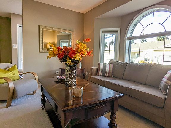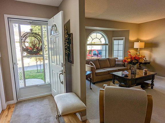Beautifully renovated, move-in ready adult bungalow with an attached single-car garage in a premier 55+ gated community in SE Edmonton. This bright, open-concept home features a welcoming living/dining area and an upgraded kitchen with honey-oak cabinets, custom cabinetry sliders, pot lighting, and a garden door leading to a new, south-facing stained deck with a motorized awning. Freshly painted throughout, it offers hardwood flooring in the hall, plush carpet underfoot, and tasteful renovations from end to end. Major updates include new windows, furnace, hot-water tank, and water softener. The spacious primary bedroom showcases a custom feature wall and excellent storage. Solar tubes illuminate the kitchen, living room, and main bath. Enjoy underground sprinklers, security gates, and low-maintenance living—no more snow shoveling or lawn care. Quiet interior location close to transit, shopping, and steps away to the hospital. The perfect downsize without compromise.