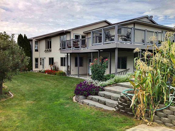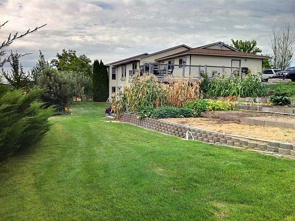 Serene Country View 4+ acres Wonderful country home with 3,600 sq.ft 5 bdr 3 baths with walk out basement. Main level master suite, lower level gathering area and extra large game room with included pool table. The wet acreage includes large barn (currently used as a work shop) + loafing shed and hay storage. The pastures have been used to raise cows, sheep and horses. Abundant terraced gardens and orchards surround the property. Individual well / Water rights included / septic / gas propane heat