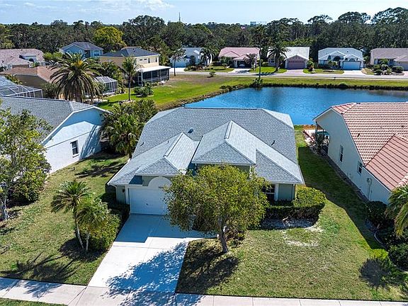 One or more photo(s) has been virtually staged. Welcome to your beautifully updated 3 bedroom 2 1/2 bathroom, 2 car garage home in Stoneybrook. Be ready to enjoy the large living area and open floor plan with pool and water views. Great home layout for entertaining or relaxing. This wonderful home is freshly painted, clean and bright and a must see! The kitchen features new wood cabinets, faucet and granite countertops along with all new (never used) stainless steel appliances. Tile floors throughout. Sliding doors take you out to the lanai and pool area bringing a lot of light to this lovely home. The bedrooms include large closet spaces (2 closets in primary bedroom). The primary suite, located on the south side of the house, is a tranquil retreat. The primary bedroom has 2 walk in closets in addition to sliders that open to the pool area. The en suite primary bathroom has dual sinks, walk in shower and large soaking tub. Relax, enjoy coffee or guests in the covered lanai area by the pool. This home features a pool bath and also updated. Both bathrooms have new cabinetry and faucets and granite countertops. Indoor laundry room with washer and dryer. Stoneybrook provides sidewalks nice for walking. Move in, relax, enjoy! You don't need to go far for dining with access to the Stoneybrook dining facilities! In addition to this home's own private swimming pool, the heated Stoneybrook pool and gazebo facility are just a short walk around the corner. Practical updates include new roof 2019, AC 2015, pool marcite redone in 2020. Both the interior and exterior of this lovely home were recently painted. A + school districts and close to Pine View. Spectacular location that is close to shopping, restaurants, Potter Park, Oscar Scherer Park, the Legacy Bike Trail and Siesta Key Beach. Potter Park, a county park, is less than two miles away off Central Sarasota Parkway which includes basketball, tennis and pickleball courts, age appropriate playground. Oscar Scherer State Park has miles of nature trails. The Legacy Trail bike path is close by. Siesta Key and it’s beautiful beach is 15 minutes away. Downtown Sarasota with the arts and fine restaurants only 20 minutes away. (some photos virtually staged)