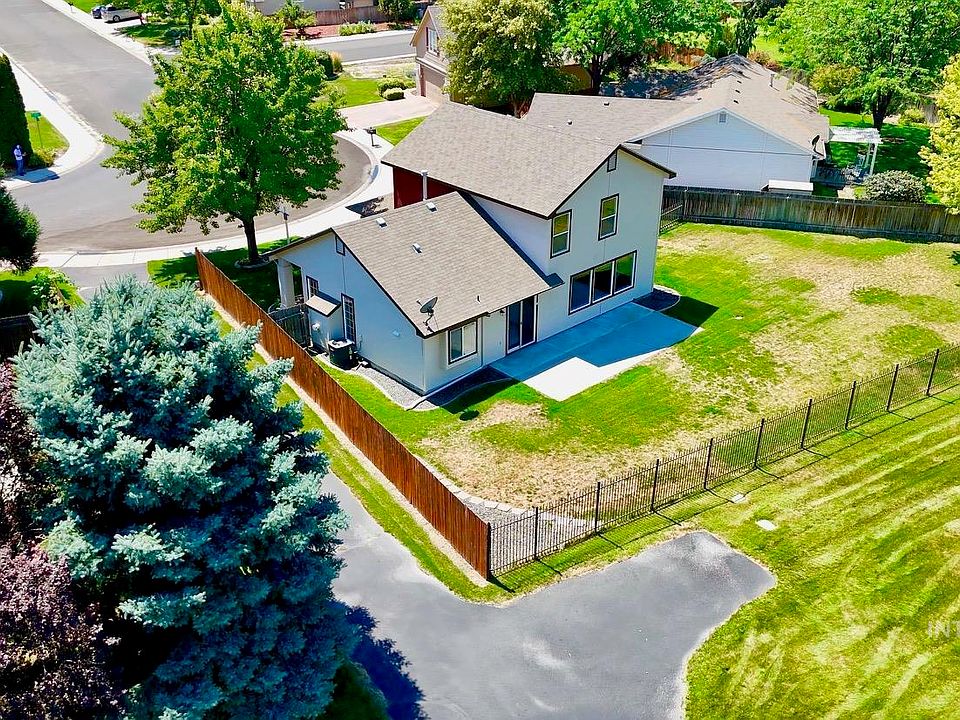 Tucked away in a prime location in Northwest Boise, near Eagle, this beautifully maintained 3-bedroom, 2.5 bathroom home sits on a generous 8,319 sq. ft. lot with mature trees and no rear neighbors! The green space behind the house provides a lovely buffer for extra privacy. With fresh carpet and paint throughout, this home is ready for you to move in! The lower level boasts a living room with vaulted ceilings and a charming brick fireplace, a family room with three expansive picture windows, a half bath, a dining room with sliding doors leading to the backyard, and a delightful kitchen equipped with a garden window, breakfast bar, and new LG dishwasher and range. Upstairs, you'll find three bedrooms and two bathrooms, including a primary bedroom with vaulted ceilings and a walk-in closet. This home is conveniently located near Eagle, with fantastic shopping, dining options, and beautiful parks such as the 51-acre Optimist Park and Steven Guerber Park!