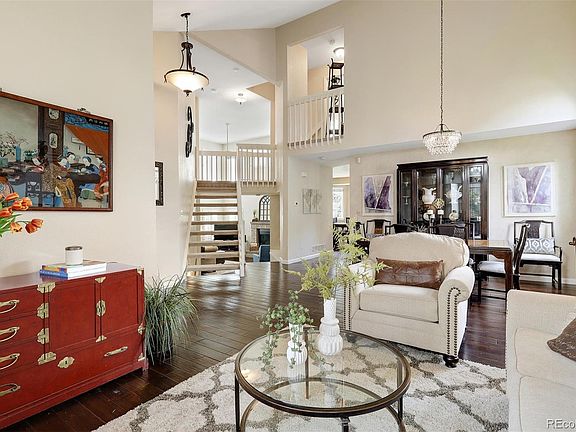 Absolute Stunner Remodeled to Perfection and Backing to Greenbelt in Wildly Popular Lone Tree. First impressions are everything and this home will certainly impress. Note the Lovely curb appeal and location, nestled on a quiet tree-lined street in Terra Ridge neighborhood. Walk in to a light filled open floor plan with high ceilings, large picture windows dressed with plantation shutters and rich wide plank wood flooring that enhance the formal living and dining rooms. The recently remodeled kitchen is a welcomed surprise with warm slab granite, two toned center island, off white custom cabinetry, and Stainless appliances including a gas range and double ovens. The kitchen overlooks the charming family room tastefully designed with vaulted ceilings, a wall of windows and anchored by a stately hearth with gas fireplace. Entertaining is easy as this home flows effortlessly outdoors to a beautifully landscaped yard and patio that backs to open space and a walking path. Enjoy a light stroll to La Quinta Park and kids will appreciate the short walk to Eagle Ridge Elementary. Upstairs you will find a luxurious master suite with 20 foot ceilings, decorative windows and a freshly remodeled 5 piece bath with large walk-in closet. Two additional bedrooms share a recently updated bath. The basement is a kid's dream with media and exercise/play area. Newer windows in bedrooms and family room, Plantation Shutters throughout, New AC, and Newer Roof. 3 car garage. Located in coveted Lone Tree: the perfect blend of urban and suburban living! A short walk to Cook Creek Pool, Lone Tree Library, Lone Tree Arts Center, Shopping and Dining at Lincoln Commons, Walk/bike the pedestrian bridge to The Bluffs trail system, and near Light Rail, C-470/I-25.