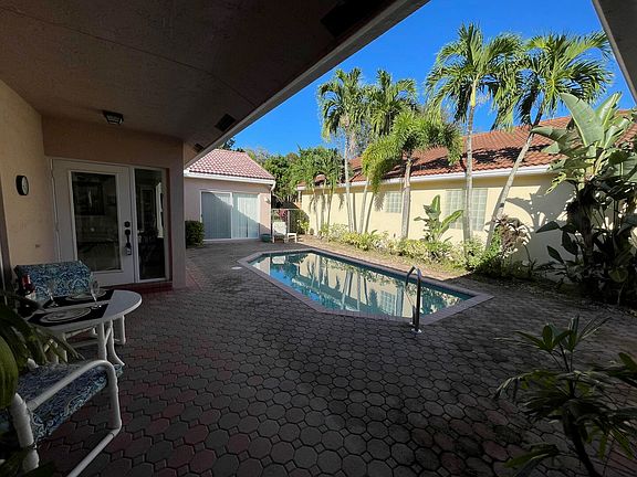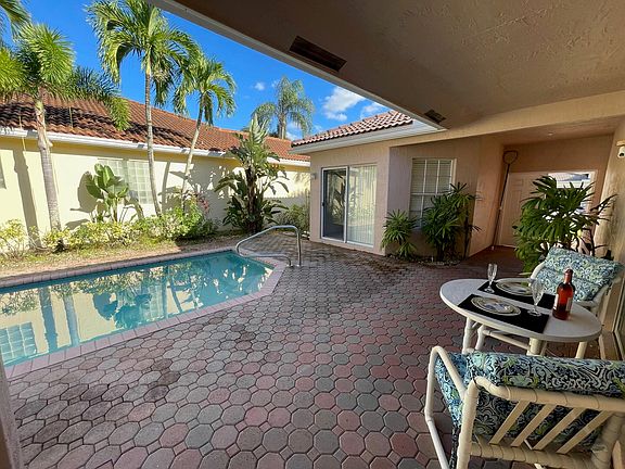 Have you been waiting for a courtyard home with guest house and pool? Do you love having guests but also love your privacy? If so, plan on coming to see this 3-bedroom, 3-bathroom home in the 55+, gated community called The Grove. The main house is full of natural light and has 2 bedrooms, 2 bathrooms, vaulted ceilings, an open floorplan, a large walk-in closet in the primary bedroom, laundry inside and a 2-car garage. The guest house has 1 bedroom, 1 bathroom and a walk-in closet. There is plenty of room on the patio to spread out but if you want more privacy head out to the backyard where you will find a canal and large trees. This home is located in The Grove. The Grove is one of Boynton Beaches best kept secrets. The low maintenance covers, lawn care, cable, security monitoring, a manned gate, and a very active clubhouse with a pool, pickle ball, tennis, bocce, billiards, card rooms, and a ballroom. The Grove community is conveniently located near shopping and restaurants. A quick closing is available, the furniture is negotiable, and the home is easy to see. Updates: AC 2023, Water heater 2018, and the pool was resurfaced in 2023. Board approval could take up to 30 days.