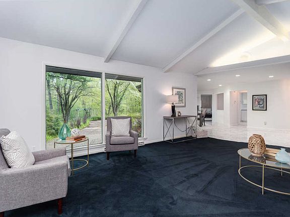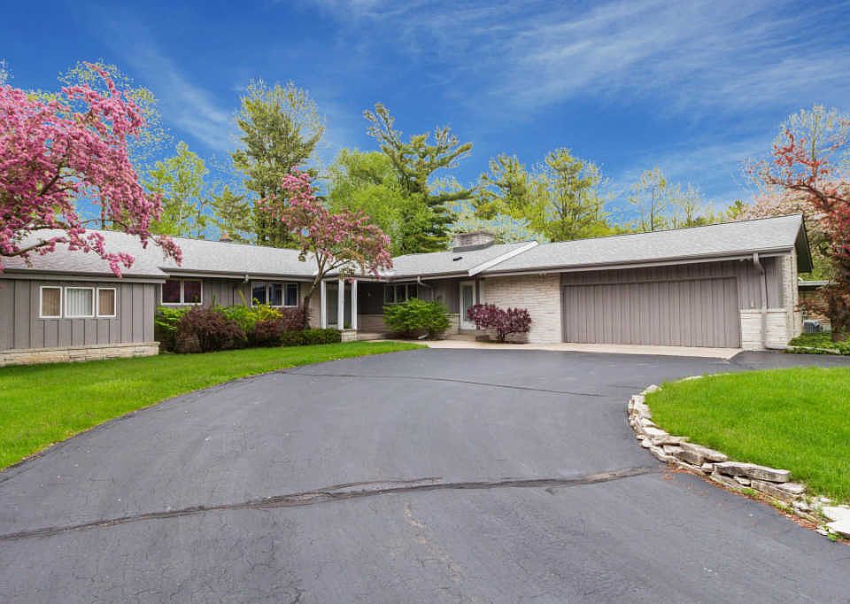 Large mid-century Ranch on a quiet cul de sac with wooded backyard overlooking the ravine. Open concept Foyer, living and dining room with oversized windows letting plenty of natural light in. Kitchen adjacent to family room with natural fireplace. 4th bedroom/office with private entry. Large master suite w/loads of closet space and dressing area. Master bath features large walk in shower and vanity. Good size bedrooms and plenty of closet space. Lower level rec room, full bath and office/den. 1st floor mudroom and laundry. Attached garage, circular drive , large patio and spacious, private yard.
