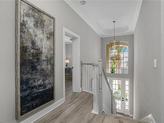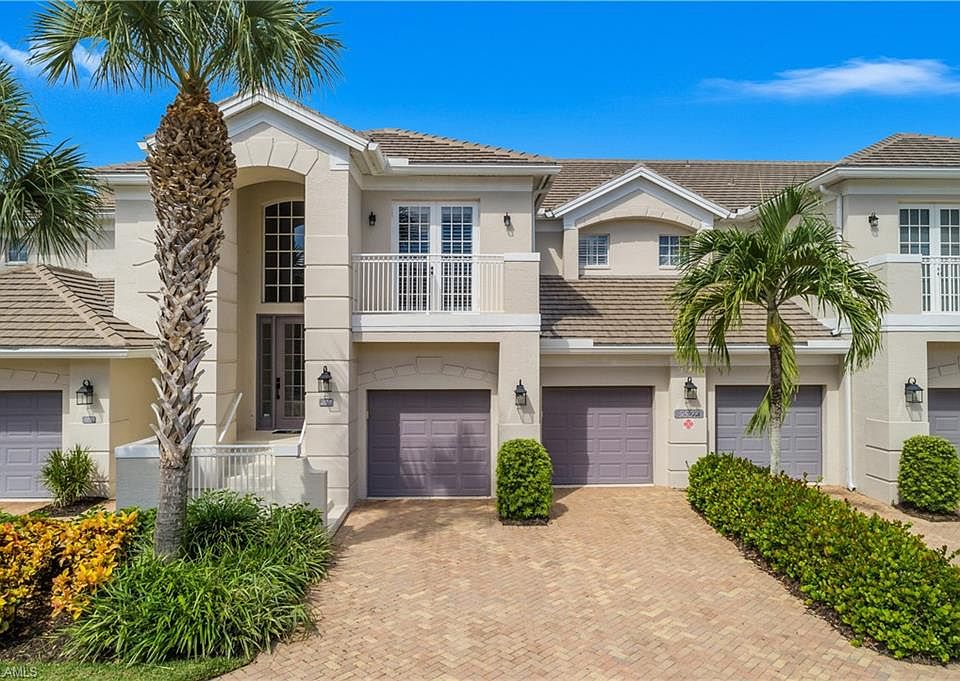 The newest Cypress Hammock two-story model condo with 2,748 sq. ft. of renovated living area...the large gourmet kitchen is visibly open to the great room and an additional flex room provides space for another den, workout/exercise or hobby room. Your choice! Lake view from the lanai. Three bedrooms plus den, 3 full baths, private elevator from 2 car attached garage to second floor. Great room architecture. Renovated interior features: walls, ceiling and trim painted with neutral color; original flooring replaced with luxury vinyl tile in major living areas and porcelain tile in bathrooms and utility room; new fans throughout, including lanai; plantation shutters at all windows; new chandeliers in foyer and dining room (Lutron control); 2020 replaced HVAC with Trane 5-ton unit equipped with ultraviolet light and programmable thermostat; utility room has newer LG washer and dryer and Rheem water heater; kitchen and baths new cabinetry with pull out shelves, quartzite countertops (natural stone), crown molding; LG stainless steel refrigerator, stove and microwave, Bosch dishwasher; bathrooms have new plumbing faucets/fixtures, custom mirrors, exhaust fans and hi-rise toilets...master bath with new hour-glass tub and free standing Groeh water faucet and wand spray; Inspire closet organizer in master bedroom (2025); lanai has electrically powered hurricane screen protection with motor replaced August 2025; new stainless steel rollers on sliding doors, including lanai; and garage doors have new springs and thermal insulation, new wall shelving and electrical outlets. New exterior Cypress Hammock features: New roof-2022 Exterior repainted-2022 Front door hardware replaced-2022 New pool furniture-2022 Roadway resurfaced-2023 New mailboxes-2024 Clubhouse meeting and exercise room, remodeled-2024 Street signage replaced-2025 Community pool resurfaced and painted-2025. Shadow Wood Country Club is now adding 3 new resort pools, indoor air-conditioned pickleball courts, outside beverage and dining service and new tennis courts. The Brooks Commons Club offers pickleball, health and fitness center, a private beach club on the Gulf and membership only restaurant. Shadow Wood is 20 minutes away from the airport and beaches and only 5 minutes to the Coconut Point outdoor mall with shopping, numerous restaurants and entertainment.