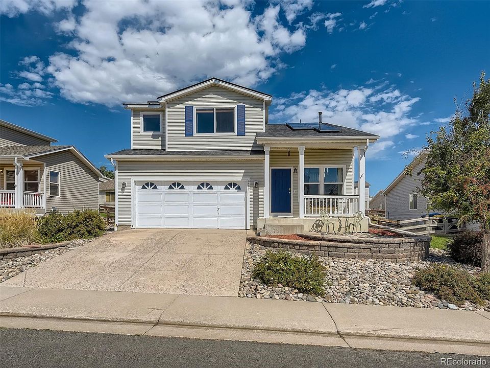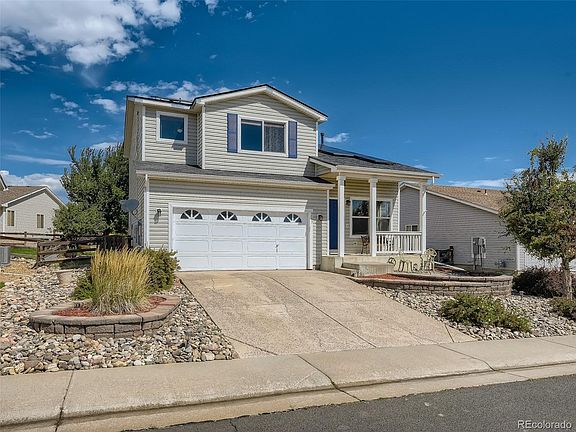 This is the perfect home to raise your family in! The property sits on a cul-de-sac with a south-facing drive. This well-maintained home has room for everyone. A brightly lit formal living room features vaulted ceilings.  Enjoy the double windows over the kitchen sink and the open space that includes a dining area with sliding doors off to the stamped concrete patio and inviting family room. Upstairs you'll find a primary suite and three generous bedrooms served by another full bathroom. The basement includes a finished office. Take advantage of low energy bills with two year old panels. Enjoy the outdoors with a covered front porch and inviting backyard. Don't miss out on this amazing home!
