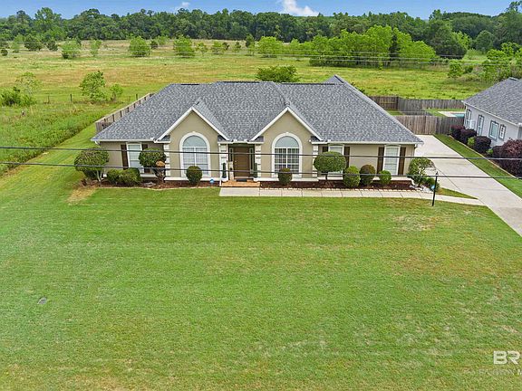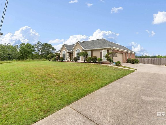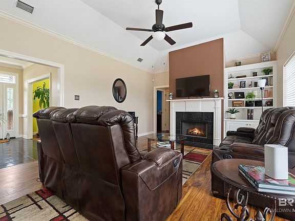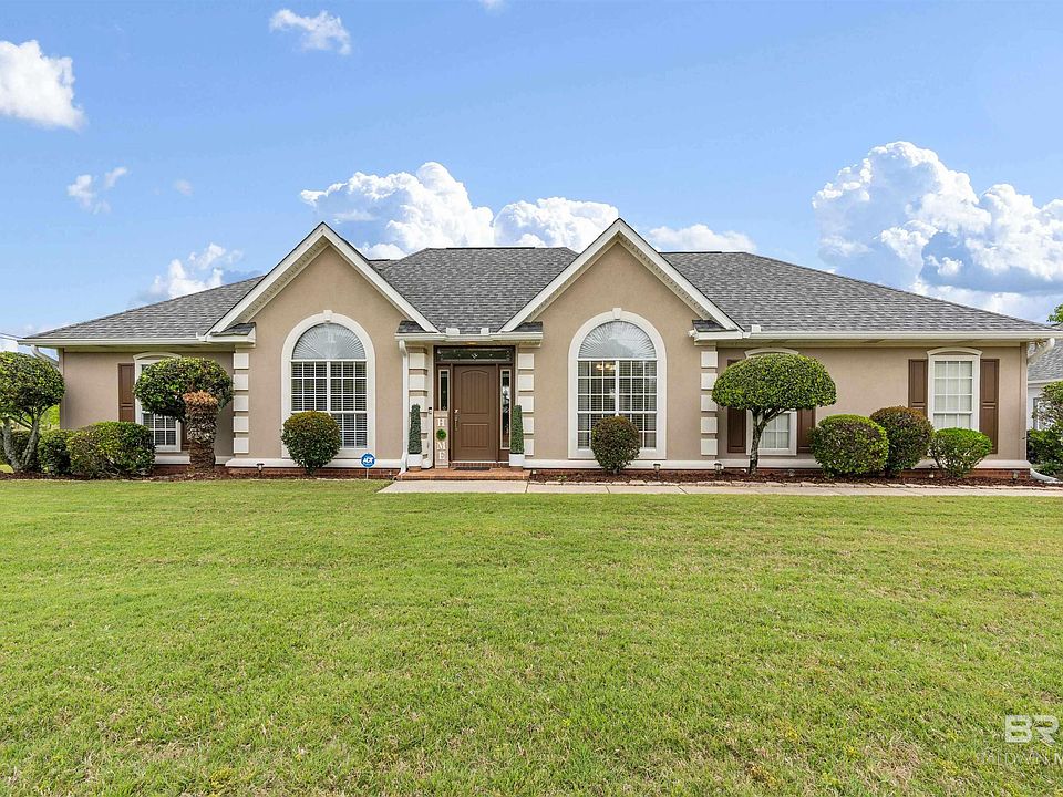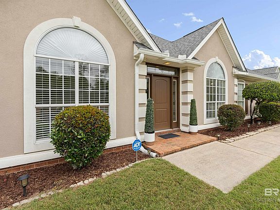 Meticulously maintained brick and stucco home in Semmes with 3BR/2Ba split floorplan and NO HOA. From the second that you pull up, and see the beautiful landscaping and freshly painted stucco, you will know that these sellers definitely have pride in ownership. Inside, there is an office to the left of the foyer and formal dining room to the right. Both have laminate flooring and large windows giving lots of natural light to the space. Continue to the living room featuring laminate flooring, gas log fireplace, turtleback ceiling, and crown molding. The kitchen features Corian countertops, stainless range and microwave, pantry, and backsplash. To the left of the living room are two generously sized bedrooms with laminate flooring and crown molding along with a freshly painted hall bath. The primary suite is on the opposite side of the home and features new carpet, vaulted ceiling, and slider entry door into the ensuite bathroom with walk-in shower, dual vanities, jetted soaker tub, and custom walk-in closet. Now step outside onto the large deck overlooking the large fenced backyard and no neighbors behind. Other features of this home include gutters, recently replaced roof, and side entry garage. Contact your favorite real estate professional to schedule to see this home before it is gone.