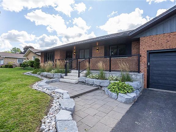 Welcome to 96 Second Ave – A fully renovated brick bungalow in an established neighborhood. Offering 3+1 bedrooms and 3 baths, this turn-key home has been modernized top to bottom. The main floor features a stunning custom kitchen with quartz countertops, open-concept living area with built-in cabinetry, with hard maple floors & tile. The spacious primary bedroom includes ample closet space and a 3-pc ensuite. A new custom staircase leads to the fully finished basement with a large bedroom (private garage stair access), full bath with a custom shower. There is a separate room in the garage ideal for an additional bedroom, in-law suite, or hobby area. Step right through the kitchen onto the private backyard deck, perfect for hosting family and friends. The fenced yard features a multi-level deck with built-in BBQ space, a recessed hot tub, cozy firepit area, and a large shed for storage. A sandpoint well supplies the in-ground sprinkler system. With all major updates complete — windows, doors, electrical, plumbing, and finishes—this home is truly move-in ready.