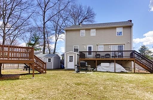 Excellent value with this immaculate center entrance Colonial w/farmers porch featuring 3 finished levels of living space situated on a quiet side street. This oversized 3 bedroom offers spacious rooms,2.5 baths and a front to back master with walk-in and full bath. Enjoy the eat-in kitchen, formal dining with french doors, coffered ceiling and inlaid hardwood flooring coupled with a front to back living room and a custom finished lower level family/game room w/storage and more. Relax on the large deck overlooking a large, level,manicured ,fenced lot w/koi pond and irrigation system & more!