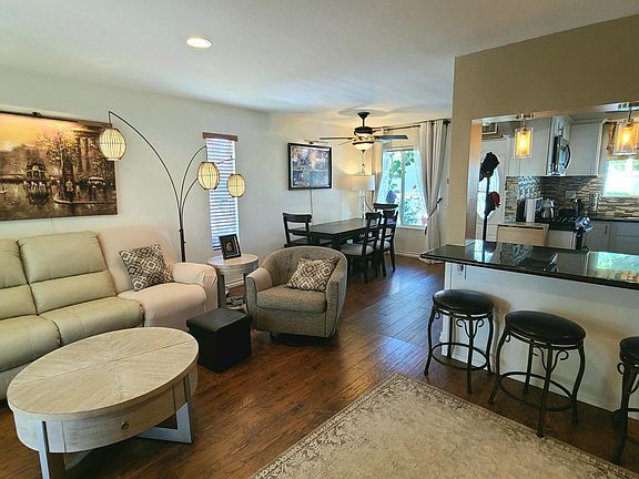 Living Room: Step into the open-concept living room, where new hardwood flooring, recessed lighting, and oversized windows fill the space with natural light. The sliding glass door opens to your private patio, perfect for entertaining or relaxing outdoors.