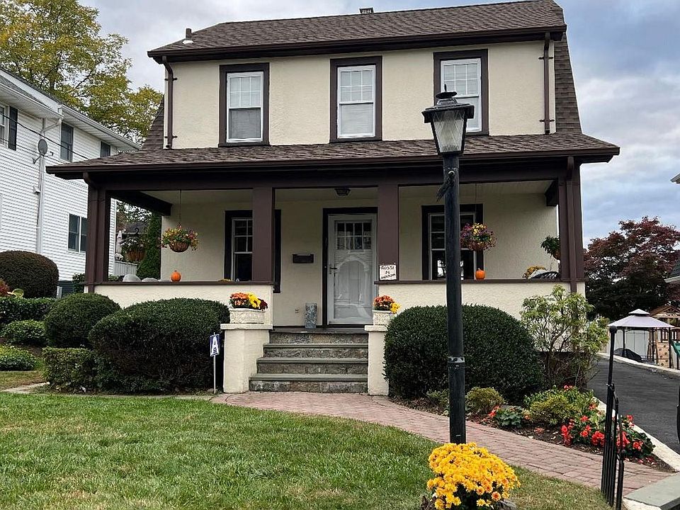 In an idyllic neighborhood that blends tree-lined tranquility with commuter convenience, this Colonial-style home with Craftsman-inspired design details delivers timeless charm at every turn. Step inside to discover rich oak millwork, a stately staircase framed by stained glass, and oak floors that run throughout. The updated kitchen pairs cherrywood cabinetry with new appliances as well as a tile backsplash and sunny breakfast nook, offering warm, welcoming space for everyday cooking and easy entertaining. You'll find three comfortable bedrooms and a full bath upstairs, while a generous walk-up attic provides bonus storage or potential for future expansion. Lower level features a large recreation room, ideal for home office or gathering space, plus additional storage and a laundry room with utility sink and  cabinets. Outside, detached two-car garage adds practicality, and the home's prime location ensures effortless access, just minutes from the Metro-North Scarsdale station, award winning Eastchester schools (including Greenvale Elementary), and an array of shops and restaurants. Residents also enjoy access to Lake Isle Country Club's golf, swimming, and tennis facilities, along with the nearby Bronx River Path for biking, jogging, or peacefull weekend strolls.