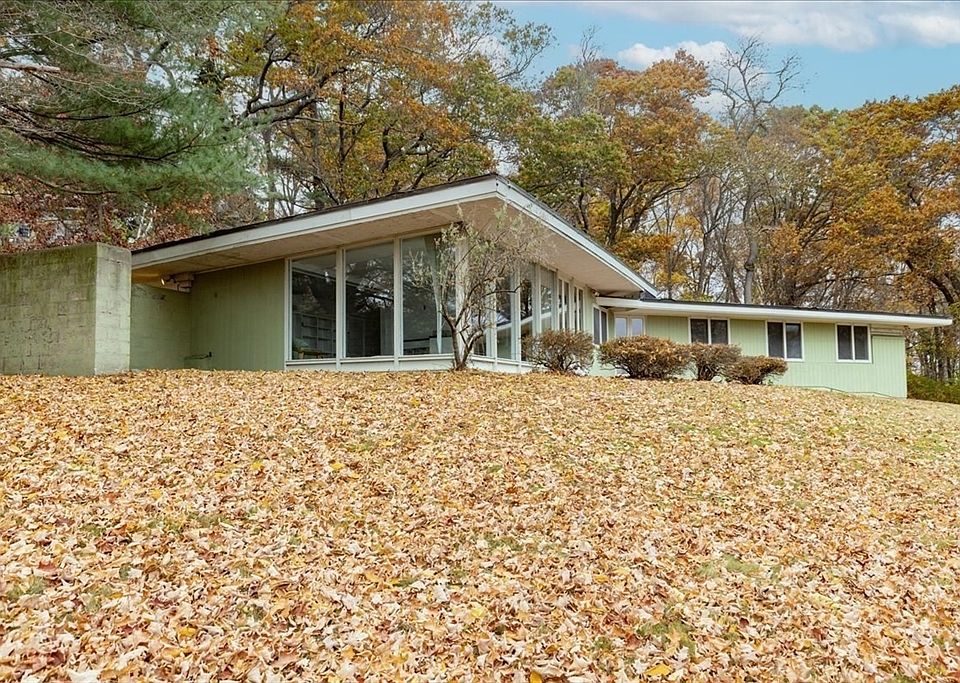 Be a proud owner and re-creator of a Usonian Frank Llyod Wright Style home. Set on a beautiful lot with lots of privacy. Inside you will experience panoramic views from floor to ceiling windows in a fireplaced living room which features a unique indoor rock garden. This sun-drenched home features a dining room with triple French doors exiting to a brick patio. Contemporary design utilizing organic architect & natural light. Its a hidden gem for all architect lovers! Go back in time with vintage appliances; 1950's Hotpoint refrigerator and built-in Thermador stove, which still work! Two mini-splits, one in primary bedroom, second in living room (2022). Roof is rubber membrane (2018).Two car carport with storage areas for wood, bikes etc. Own this unique one-of-a-kind home and choose to keep special features or start from scratch. Whatever you choose to do, you can't go wrong. You're on the road to one of the most beautiful beaches in the State. Don't miss out. OFFERS DUE WED. 11/6 @ 6PM