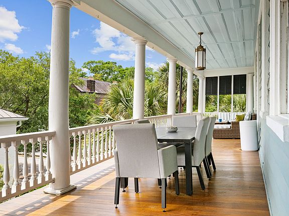 Each of the three bedrooms includes a king-size bed and en suite bathroom, providing privacy and comfort for every guest. Additional amenities include a full-size laundry area, a half bath on the main floor, and access to a private piazzaan ideal spot to enjoy the Charleston breeze.