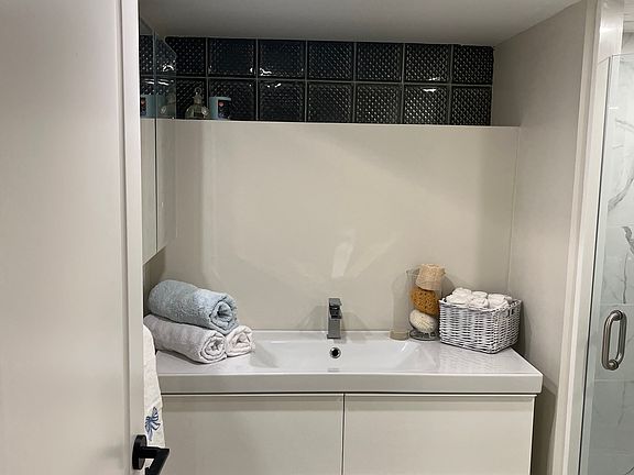 Bright new ikea kitchenWhite appliancesBrand new gas fireplaceBright new bathroomSeparate ensuite laundry roomLarge outside deck