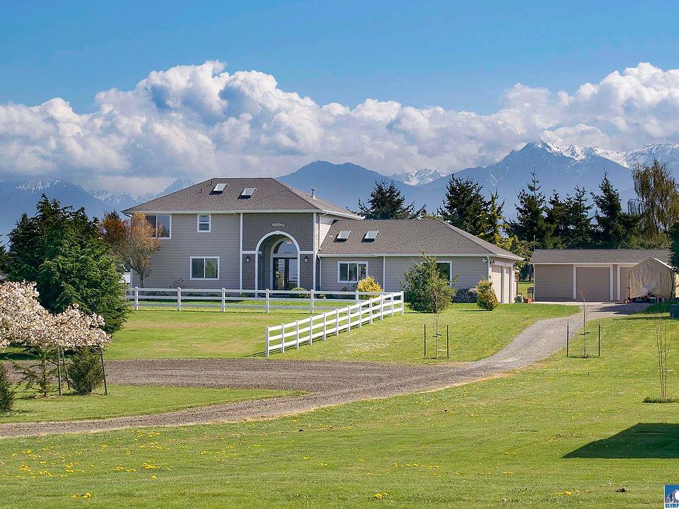 Captivating floor to ceiling windows fill this home with warm sunlight & great open spaces for all your needs. The patio faces South to the Olympic Mts. with a peaceful water feature, large raised bed gardens, new greenhouse & fencing on 1 Acre. Master suite & office are on the main level w/2 guest suites & a den on the upper level. Quality resonates throughout the home from the bamboo flooring, granite counters, appliances & gas fireplace. Walk to Dungeness Wildlife refuge, 3Car attchd+2Car detchd Garages