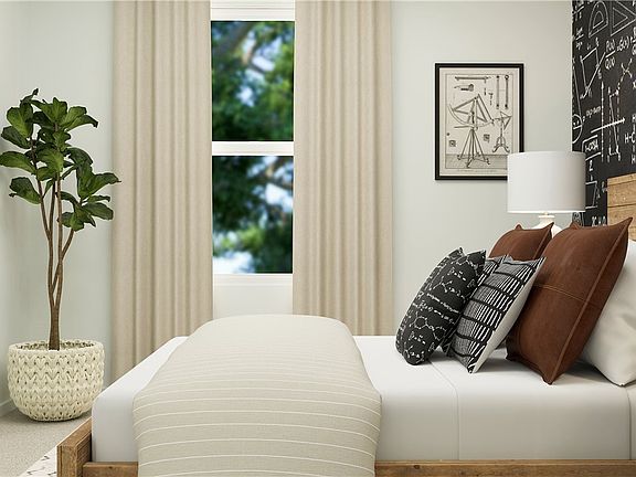 This convenient single-story plan opens to three secondary bedrooms framing the entryway. Down the hall, an open peninsula-style kitchen overlooks an inviting dining area and a spacious living room, ideal for seamless modern living. The owner’s suite is ideally situated in the back corner to provide a serene retreat, featuring a bedroom, attached bathroom and a walk-in closet.
