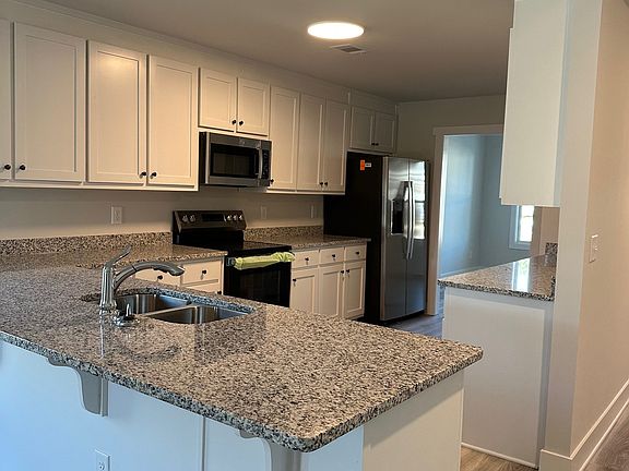 Craftsman style ranch, 3 bedroom, 2 bath, concrete siding, patio, granite kitchen countertops, custom white cabinets, pantry, open greatroom with gas log fireplace, laminate flooring in all common areas, carpet in all bedrooms, master suite has walk in closet, master bath has formica countertops, walk in tile shower and tile flooring, 2 car garage, we will fence the yard. It is rented for two years, renewable every two years, we only accept one pet for a $400 pet fee