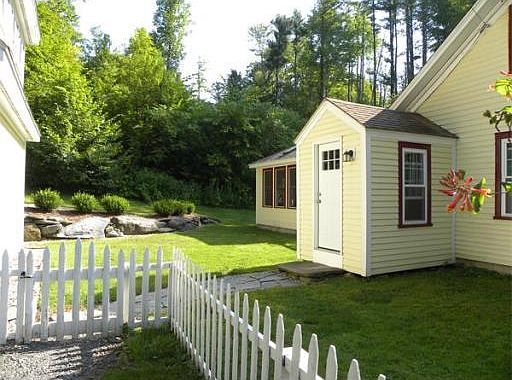 When you enter this property you will fall in love with the charming details this special home has to offer. It is sweet as can be, tastefully decorated, & beautifully maintained. Many updates have been done & it is ready to move in and enjoy. It has a galley style kitchen with plenty of cabinets and a spacious dining & living area w/sliding doors to the back deck. There is a 1st floor master bedroom, full bath, laundry & two bedrooms on the second floor. It comes w/ newer replacement windows, hardwood floors, built-ins, nice entry, newer roof & passed Title 5 septic system. Connected to the deck is this delightful structure that comes w/ a hot tub & outside shower and can easily be converted to year round studio space. There is a separate building that serves as a 1 car garage, storage area & a fabulous finished 2nd floor space that is ideal for office or studio. The secluded backyard is surrounded by gardens, nice woodlands, treehouse & you can hear the sounds of Clesson Brook.
