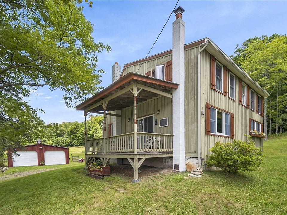 Escape to your dream home! This charming 4-bedroom residence features an inviting open floor plan, perfect for relaxed living and effortless entertaining. The delightful kitchen exudes warmth and character. Cozy up in the living room with a wood stove that enhances the rustic charm. The main level offers a bedroom for easy access, while the upper level boasts three additional bedrooms and ample storage space. Enjoy the practicality of a first-floor laundry room. A spacious detached garage with a workshop provides room for projects and storage. Nestled on 4 tranquil acres, this property offers breathtaking views and a serene atmosphere. Spend leisurely afternoons by your own swimming pond, complete with a dock, or enjoy the cozy patio for outdoor gatherings. A brand new septic system was installed in August 2024, ensuring peace of mind. Ideally located near Spencer, Van Etten, the Finger Lakes wine region, Corning, Ithaca, Elmira, Waverly, and PA, this home is perfect for outdoor adventures and cultural attractions. Don’t miss the opportunity to make this enchanting retreat your forever escape!
