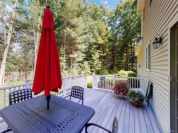 Premier eastern Avon location down a PRIVATE LANE off of Country Club on lightly wooded level acre lot. With over 3,300 sq ft of living space enjoy this sun filled 9 rm, 4 bed, 3.1 bath immaculately cared for and maintained colonial. Two story foyer, wainscoting, French doors, hardwood floors and 9-foot ceilings on the first floor are just a few of the architectural details that make this house feel like home. Entertaining is easy in an expansive eat in kitchen which opens to a large family room with an abundance of windows and oversized fireplace. The kitchen boasts granite counters, center island, butler's pantry with bar and tons of storage, built in desk area and large dining area with sliders opening to the composite low maintenance deck. Working from home will be a breeze in this first-floor office with French doors for privacy. Retreat in the master bedroom suite with tray ceilings, walk in closet, full bath with double sink vanity, jacuzzi tub and separate shower. Another 24 x 14 bedroom with its own private bath, full closet and storage closet could also be a bonus room. Two other upstairs bedrooms both have full double sized closets. A second-floor laundry room adds convenience and central air throughout adds comfort for those hot summer days You'll never run out of room to for all of your belongings with loads of storage everywhere - bathroom closets, linen closets, full unfinished basement with hatchway to backyard and a 3 car attached garage