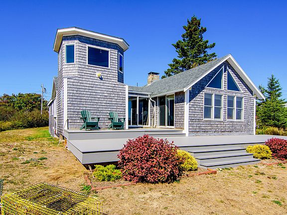 Deepwater Oceanfront as far as the eye can see! The whimsical Maine shingled year-round cottage is an artist's delight with its octagonal lookout STUDIO or third bedroom (septic design is for 3 bedrooms) with panoramic VIEWS of Corea's exquisite islands and pink granite. Listen to the crashing surf from your deck, great room and office and watch Corea's fishing fleet come and go. This 2-bedroom home was extensively renovated in 2013-2019. Lots of light —and views, views, views unparalleled on the Coast of Maine! Deliciously quiet near the end of a dead-end road, but minutes to the trails of Acadia National Park's Schoodic Pt. & Winter Harbor for shops, restaurants, arts & golf.