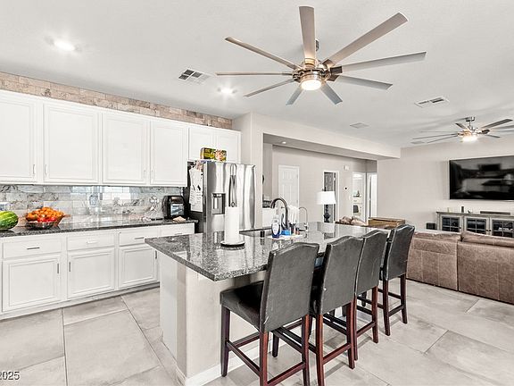 Welcome to 96 Cricklewood Ave, a truly exceptional home in the Paradise Point community of Henderson. This two-story, 6 bedroom, 3 bath residence spans 3,747 sqft of thoughtfully designed living space, plus a loft that offers potential for a 7th bedroom. Downstairs features two bedrooms next to a full bath — perfect for guests, older family members, or a secondary living suite. The upstairs primary suite impresses with its sitting area, dual walk-in closets, separate tub and shower, and dual vanities. Gourmet kitchen with double built-in ovens, island & breakfast bar, granite countertops, and a reverse osmosis system. Outside, enjoy resort-style amenities: a heated saltwater pool & spa with waterfall, PebbleTec finished pool, built-in BBQ, artificial turf & meticulously designed landscaping. 2 BRAND NEW HVAC UNITS, tinted windows & ceiling fans throughout. The 3-car garage features epoxy flooring, a workbench, a water softener, and a 220V hookup for EV or heavy tools!