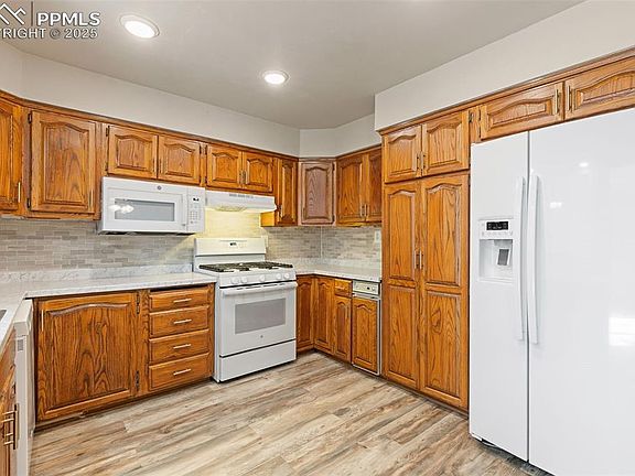 Newly Refurbished, One Owner Home on Large Corner Lot with Mature Landscaping Near Shopping, Schools, Fort Carson. Vinyl Siding, Newer Roof and Gutters, A/C and Furnace recently Serviced. Original Hardwood Floors in Like New Condition Having Always Been Covered by Carpet. New Carpet in Various Areas, Including Family Room and a Bedroom. Master Bedroom has His and Hers Closets and a 4 Piece Master Bath. Appliances Included are Refrigerator, Range/Oven, New Dishwasher, Microwave and Washer, Dryer, and Freezer in Garage. Note the Large Family Room Leading to the Gorgeous Back Yard with Moss Rock Fountain. Newly Poured Patio with Pathway to Quaint Cobblestone Patio Featuring Flowers Including Rose Bushes. Imagine Relaxing Next to a Bubbling Fountain/Waterfall or Entertaining Family or Friends Around the Large Six Person Umbrella Table. Oversized 24x25 Garage with Work Benches and Cabinetry. This Home is Waiting for You to Make it Yours for Years of Family Fun to Create Happy Memories.