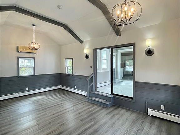 Check out this awesome beauty that offers 3-4 bedrooms. Fantastic floor plan! The garage has been converted to living area with cathedral ceilings, new flooring and wide open space. Updated paint and light fixtures throughout the entire home. Brand new kitchen with stainless steel appliances and backsplash. Gorgeous bathroom vanity with new light fixtures and tub with new surround. Open floor plan in the living room and also offers and additional 1/2 bath. 2nd floor is completely finished into 1 large bedroom that can easily be converted into 2 bedrooms. Home is a sprawling 1920 sf and the set up offers many options. Bonus of central air, gas heat and maintenance free vinyl siding.