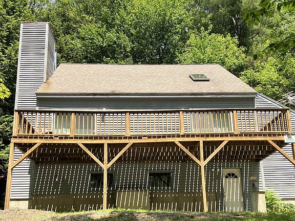 New Listing in Section C! Quiet corner of the Resort features this Classic Chalet with a mudroom entry, bedroom with slider to the deck, a full bath, open concept kitchen with wood cabinets and breakfast bar, dining area with a bay window, living area with vaulted ceiling, wood burning fireplace and slider to the deck. Upstairs has a full bath with skylight and two bedrooms, one with a skylight and lock-off storage closet. Full walk-out basement could be finished. If you've been thinking about a Vermont getaway, this house has a lot of potential and attributes, including radiant heat flooring as one of 3 sources of heat. Live the Resort lifestyle on Chimney Hill's 1,200-Acre Resort Campus, with 550-Acres owned in common by the Homeowners Association. Numerous multi-use trail system for biking, hiking, snowmobiling, 3 areas with tennis courts, seasonal pickleball and ice skating, year-round swimming at the Exclusive Members-Only Club House located at 2,000' in elevation with indoor and outdoor in-ground pools, hot tub, fitness room, arcade room, small child playroom, community room, table tennis, basketball, fully-equipped kitchen for HOA members use, outdoor grill by the outdoor pool, along with a playground for young children, and members lounge. Plus, world class skiing and shredding just minutes away, golf, boating, fishing, paddleboarding, unique shops, fine dining, flea markets, festivals, music, and all the Deerfield Valley and Southern Vermont have to offer!