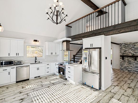 Welcome to 96 East Randolph Road in Chelsea, Vermont! This beautifully updated three-bedroom, two-bath Cape combines timeless character with modern comfort on a peaceful one-acre lot. Fully renovated inside & out, even down to the septic system, this residence is like new throughout! Step inside to a warm, light-filled living area featuring exposed beams, vaulted ceilings & stunning countryside views from every window. The open-concept design is enhanced by a charming loft-style balcony overlooking the main living space, adding both architectural interest & a spacious feel. The fully updated kitchen with all new cabinets, countertops & appliances offers ample cabinetry & room for casual dining, flowing seamlessly into the living & dining areas for effortless entertaining. First-floor master bedroom & bath provide convenience & the possibility of one-level living, while two additional spacious bedrooms with a shared bath upstairs offer flexible space for guests or an office space. From the new siding, roofing, windows & a reimagined roofline encompassing the exterior, the home perfectly blends style with low maintenance for years to come. Outside, enjoy a large, open yard framed by mature trees, a new back deck & a welcoming mudroom entry. The detached two-car garage, also new (!), offers plenty of storage & workspace. Set on a quiet, paved road just minutes from downtown Chelsea, this home offers the perfect mix of Vermont charm, modern updates & breathtaking views!