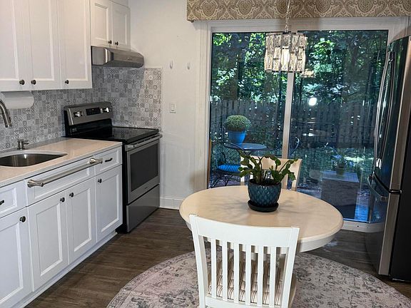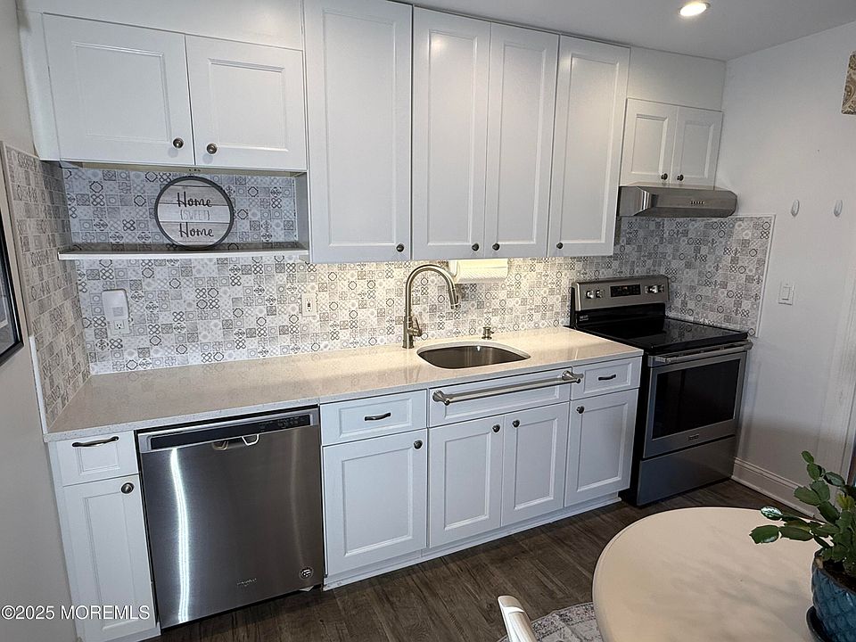 Beautifully renovated lower-level end-unit condo in desirable Navesink Cove, Atlantic Highlands. Nestled in a quiet spot surrounded by greenery and a trickling creek, this condo features new vinyl floors and a stunning eat in -kitchen with newer cabinets and beautiful backsplash. Enjoy your morning coffee while overlooking your private patio with a grassy area that is accessible with a sliding door. Updated bathroom includes a walk-in shower, newer vanity and fixtures. A converted laundry area offers in-unit washer/dryer in and lots of storage. Master Bedroom will fit a king or queen size bed and has double closets. Exterior updates include: newer roofs, high-efficiency boilers, concrete walkways, and storm doors. HOA covers all but electric and cable. Enjoy the community's pool all summer! Perfect for first-time buyers, downsize or a weekend retreat. Minutes to NYC Transport.