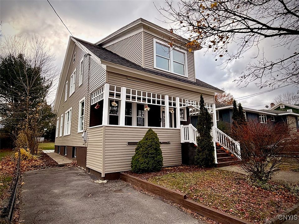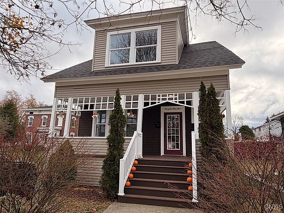 Absolutely beautiful. This home has been lovingly remodeled over the past 2 years, with each update carefully completed... The open front porch is decoratively trimmed, and is inviting to friends & family. Inside you'll appreciate the detail given to each space. The large living room is bright, with several windows for natural light. The formal dining room has original built-in cabinets with high windows between. Fresh, bright and ready to enjoy - the kitchen is complete with hand tiled backsplash, quartz countertops and new appliances! Use the extra space in back of the kitchen for a family room or an eat-in space... Upstairs, each bedroom is generous in size with plenty of closet space, the beautifully remodeled bathroom includes hand-tiled tub walls, and the 2nd floor laundry is a convenient touch for daily life! The attic is accessed by a full staircase and is perfect for storage! The extra large back yard is nicely landscaped with mature plants... So many updates, from furnace to windows to siding and more! A pleasure to visit, and a must see. This home had additions by past owners, and measures out to be just over 2,000SF.