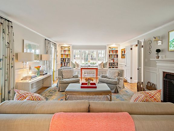Welcome home to this charming, well-maintained, Wellesley Farms cape with a versatile and sprawling floor plan. The sun-filled kitchen features freshly painted cabinetry w. new hardware, a counter peninsula with seating, and stainless steel appliances. The dining area has built-in china cabinets and opens to a deck with built-in seating and a cozy screened-in porch. The oversized fireplaced living room includes a large window seat and built-ins. The first floor also offers a generous bedroom (currently a playroom), a renovated full bath w. tub, and an office/library w. two closets. Upstairs, find three roomy bedrooms, including a primary with double closets, a renovated full bath with dual sinks, and a walk-in cedar closet. The walk-out lower level includes a mudroom, bonus room, half bath, workroom, and laundry. AC, a fenced backyard, set back from street & a nearly 20k sqft lot. Convenient to the Farms Commuter Rail, Lower Falls, Cross Town Trail, Warren Park & more. A happy home!
