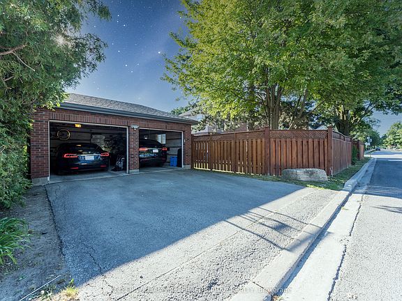 Renovated, detached home with rare double car garage and driveway in Leaside? Park 4 cars total! Or build a garden/lane suite and maintain the surface parking. Tesla EV charger. 3+1 beds, 4 baths with extremely large back/side yards. Spray-foam insulated third garage used as a heated/cooled private gym. Corner lot gives plenty of natural light and rare extra yard space, not much traffic on dead-end street as only Holland-Bloorview staff have access (no emergency ward, means no ambulance). No homes behind the house for ultimate privacy. In-ground sprinklers with wi-fi capability. Access to Sunnybrook Park in backyard. LRT station already built and will be functioning eventually. Lot line is officially 25 ft wide, but measures 44 ft due to fence permit with the city, which effectively becomes a massive back and side yards. Extra blown-in insulation (R-80). Top rated Northlea Public School with dual-track English and French immersion, Leaside High school districts.