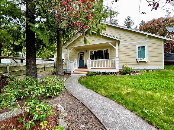 Cute craftsman style 3 bedroom, 2 bath home in town. One level floor plan for easy living. Over 1200 SF, with attached 2 car garage. Walking distance to town, ferry, cafes, and Elementary School. Covered porch, newly painted, newer washer/dryer. Large lot has beautiful trees, fenced back yard and nice landscaping. Great rental or starter house!