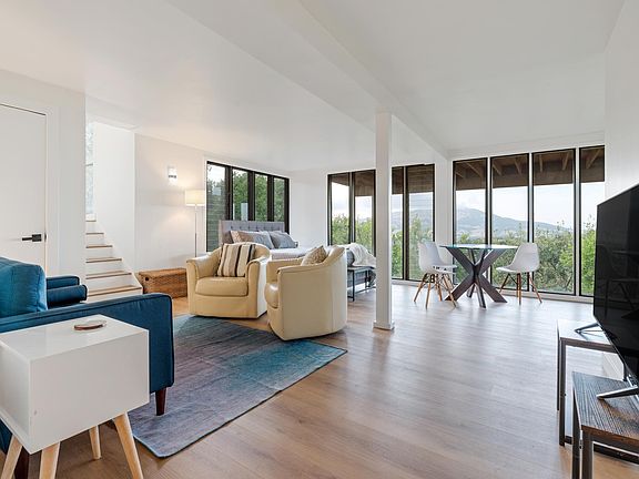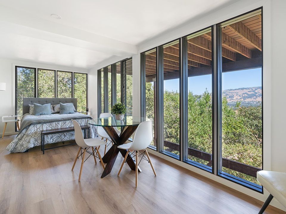 Artists! Nature lovers! This is your retreat in the trees. Floor to ceiling windows create a light and bright great room. Large and flexible space with apple TV Recently upgraded kitchen is in another room. Full 4 burner stove + oven, full size side by side fridge/freezer. 2 windows and a door to the patio. Dining area for 3, plus options for outdoor dining on the private deck. Furnished right down to new linens and all the kitchen gadgets you'd expect in a 2 bedroom air BnB. Great room is outfitted with a queen bed, nightstands, blackout thermal curtains, wall-mounted Apple TV, couch, love seat, coffee table, glass dining table, closet, and swivel chairs. It's a large space that can prior tenants have reconfigured to their work/home needs. The full kitchen, side by side washer and dryer and additional storage are in the adjacent room. Kitchen and living room each have access to the spacious private deck. Off street parking for 2 cars Location: Minutes to downtown, but feels like a world away. Novato has a vibrant downtown (Grant Ave) with Dr. Insomniacs, Sushi, boutiques, bakeries, an Irish Pub, wine bars, and frequent live music. Farmers markets, summer street festivals, outdoor movies, 8 minutes to Whole Foods Market 6 minutes to Safeway Trader Joes, Grocery Outlet, Nugget are also nearby. Pets Welcome! includes: Smart TV sofa, loveseat, swivel chairs dining table and 3 chairs fully equipped kitchen washer / dryer 3 storage closets driveway parking Fractional utilities (not included): PGE (gas and electric) Water Garbage High speed internet -Three month minimum stay -PGE, High Speed Internet , Water and garbage billed back to tenant -Additional fees for electric vehicle charging (no charging ports installed) -Renters Insurance required