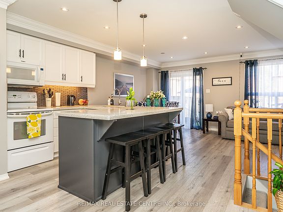 Well Maintained & Upgraded All Brick Freehold Townhouse. Bright Open Concept Main Floor Living Area with Large Foyer & Double Coat Closet. Kitchen with Island Breakfast Bar, Pendant Lighting & Quartz Counter. Living & Dining Area with Large Window and Sliding Doors that Walk Out to Fenced Yard with Patio. Upper Level Offers Primary Bedroom with Semi Ensuite 4pc Bath. Plus Two More Good Size Bedrooms each with Dbl Closet & Large Window. Partially Finished Basement Rec Room, Playroom/Office, Laundry Rm & Storage. Good Size Backyard with Patio, Great Space to Unwind with the Family. Excellent Location, Easy Walk to Park, School & Downtown with All Amenities. New Laminate Flooring, Crown Molding, LED Light Fixtures & Paint 2023. New Furnace with Eco Thermostat, Central Air, Washer & Dryer in 2022. New Stove & Quartz Counter 2020.
