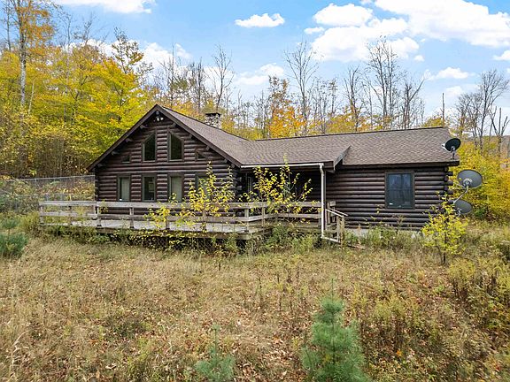 Have you ever dreamed of your own mountaintop sanctuary where you can enjoy true privacy, beautiful views and 66 acres of your own wilderness? This is a once-in-a-lifetime opportunity to own this incredible property at an incredible price. This 2006 ranch-style Log cabin was custom built with 3 beds and one full bath, and a large open kitchen/living/dining area with vaulted ceilings. One bedroom has had closet and door removed for use as a den but could easily be put back if desired. The basement includes a great workshop area, a one car garage and an enormous walk-in safe. Buderus FHW oil furnace and central wood stove keep the house warm in all seasons. Roof replaced in 2023. Nice Moosilauke Mountain views from the front which could be extensive with further cutting. Amazing location off the beaten path but close to all White Mountain activities. Nature in abundance, hiking trails, atv and snowmobile trails, Lake Tarleton for swimming/boating, rivers to explore, and more. The 66 acre parcel abuts WMNF for total privacy. House and grounds in need of clean out and property is priced accordingly. Message for more info/interior photos. Quick close desired.