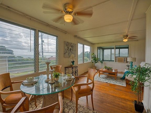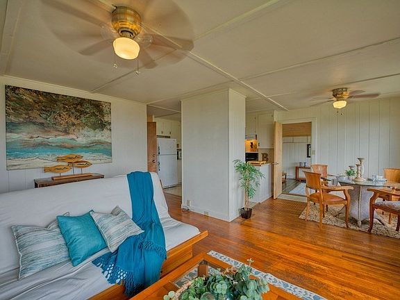 The cozy living room and the dining space boast a beautiful view of the Hilo Bay, gaze out and enjoy the tradewind breeze coming through the window.