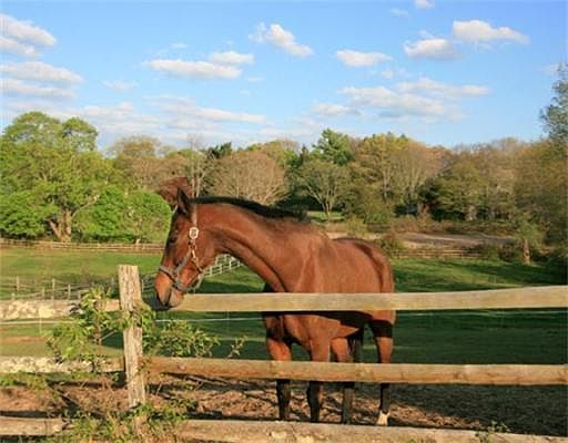 Cabot Farm, a gentleman's horse farm built on 13.69+/- private acres, features rolling terrain, meadows, fenced paddocks and pastures, Gracious, 5-bed house with commanding views of the surrounding conservation land, 2 barns with 8 stalls and a 1,000 sf apartment above. Additional 72+/- conserved acres featuring stone wall-and-rider jumps for cross country jumping and galloping available for $300,000. Please do not drive into property.