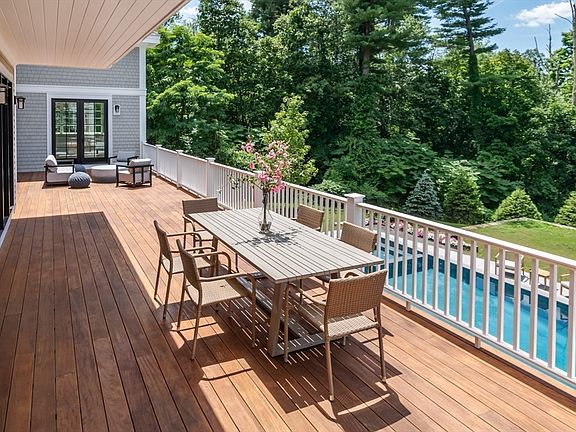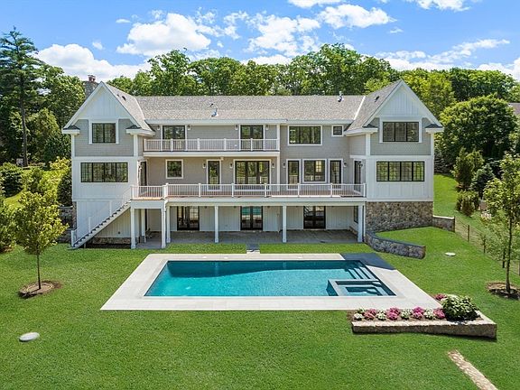 NEW CONSTRUCTION with a spectacular heated gunite pool and spa on 1.75 acres in one of Weston's finest south side locations. Sited in a legendary Estate neighborhood this beautiful, classic Shingle & Stone home offers 6 bedrooms, 7.5 baths and over 9000sf of sun filled living space. Walls of glass and multiple west facing terraces flood the house with natural light and gorgeous big sky views. Highlights include an amazing walk out lower level with entertainment lounge, gym, and a guest suite all overlooking a resort style pool and lush private grounds. Enjoy a lavish Primary Suite Hideaway with a luxurious spa bath, oversized dream closets, dressing room and french doors leading to a romantic sunset deck. Dazzling white custom kitchen with expansive island, and top of the line appliances. This is a rare, unbeatable opportunity. Move in ready, brand new construction in a prestigious Estate location with convenient access to Boston, top ranked schools and all major commuting routes.