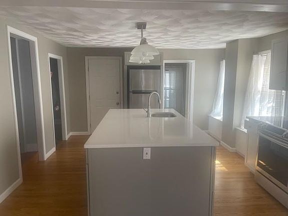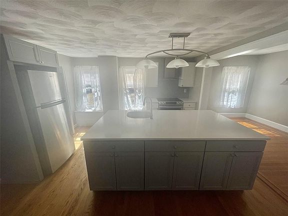 If you like old world charm meets modern day decor this is the house for you ! Completely remodeled first floor featuring brand new kitchen boasting expansive 8 foot wide center island with quartz counter tops for all your cooking and prepping needs . Brand new kitchen appliances and beautiful backsplash to compliment the area. You can choose whether you want to dine in the eat in kitchen with plenty of room or a more formal dining area next room over . The living room is a great size. You will find beautiful original detailed flooring on the main level. Currently, there is an office off the kitchen with a bathroom. Upstairs features new flooring and two bedrooms with a good size closets. Soak in the bath tub and newly remodeled bathroom after a long day. Home has a bright porch to relax in on those beautiful hot summer nights or sit on the deck, your choice. The yard is a great size for any size family and pets. The back yard features a shed with electricity and a generator hook up on side of house. Newer furnace and electric updated.