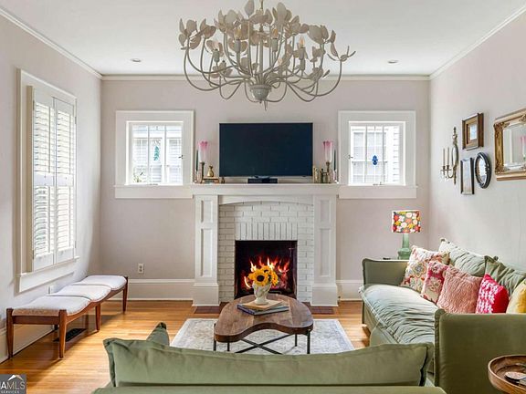 Step back in time with this charming 1920s home, perfectly situated just blocks from historic Marietta Square. Imagine starting your weekend with a stroll to the local farmers market, watching fireworks from your own front lawn on the 4th of July, immersing yourself in year-round festivals, and enjoying all the dining, shopping, and community events that make the Square so beloved. Inside, this four bedroom, two bath home radiates warmth and character with original hardwood floors, millwork, and a gas log fireplace. The kitchen is a true heart of the home - a space that invites you to simmer a pot of soup or savor your afternoon tea. Outfitted with classic white cabinetry, new walnut butcher block counters, quartz-topped custom island, and abundant natural light, it's a kitchen where memories are meant to be made. The primary suite occupies the second level and offers a private retreat with a full bath, while the finished lower basement level provides flexible space for a home gym, media room, or casual hangout - plus ample storage. Outdoors, the charm continues with a beautifully landscaped yard, a welcoming front porch perfect for morning coffee, and a detached two-car garage. This is more than a home. It's a lifestyle steeped in history, community, and everyday comfort, all within steps of the vibrant Marietta Square. Additional upgrades and features include: Updated light fixtures, new interior paint, new HVAC system with EcoBee thermostats, tankless water heater, new garage doors and wall panels, and full irrigation system with new front sod.