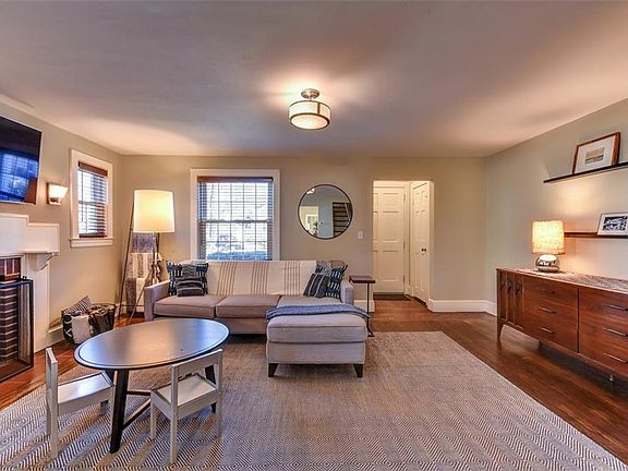 Delightful 1930's Cape in excellent move-in condition. Open layout with original details and hardwood floors throughout. The spacious living room features a handsome working fireplace and is open to the dining room. Updated kitchen with Silestone counters, stainless appliances, and trendy light fixtures. The 2nd floor has two generous bedrooms plus an additional room which can be used as a study or small bedroom. Freshly painted interior. Replacement windows with custom cordless Levilor wooden blinds. Enclosed back porch makes a great plant room or mudroom entry. Fabulous yard with exceptional perennial plantings and a brick patio. Large storage shed with electricity. Integral garage with an automatic door-opener. New gas boiler. New gas hot water heater. Ideally located in the Elmhurst section of Providence, just minutes from the train, highway access, and downtown.
