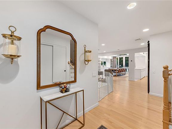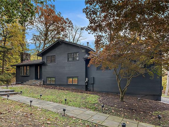 LIGHT & MODERN - A stunning renovation. Dark charcoal exterior contrasts with crisp, clean interior. Light maple floors, white walls, skylights and custom lighting. Two decks and a large terrace for an incredible indoor-outdoor lifestyle. Practical split-level design offering separation for entertaining, sleeping and everyday living. Incredible Great Room with multiple seating areas. Dramatic Dining Area. Skylit Kitchen with top-of-the-line Monogram appliances including a state-of-the-art pizza oven. Lower level Family Room with doors to the terrace. Spacious Master Suite with separate Nursery/Office. Two additional Bedrooms. Beautiful private land in the heart of a desirable neighborhood. Easy access to Bedford Village.