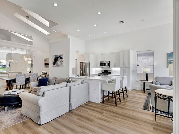 This home is perfect. Stunning wide and long sunset views over lake and wandering canals including 4th, 15th and 16th holes of the PGA National Palmer course. Complete and wonderful renovation over this 4 bedroom 3 bath and loft two car garage home. Additionally all new to newer mechanicals and fresh 2020 roof. Custom designs, open and airy volume ceilings, Tremendous patio and enclosure boasting a like new salt pool, and heater.Luxury Vinyl Tile throughout, gas utilities. Everything is updated. See extensive list attached. Nothing to do.Main bedroom, 2nd bedroom and 2 full baths plus 2 walk in closets on first floor.Located tucked away in a small enclave of Eagleton, the exclusive double manned gated community in the heart of PGA National, home of the Cognizant