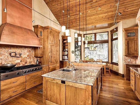 Outdoor fireplaceExceptional mountain viewsOutdoor hot tubWine roomWet barBreakfast nookHeated two car garage