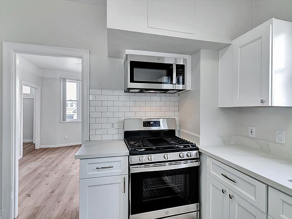 Features include hardwood floors, freshly painted walls, a new kitchen cabinets, quartz countertops, and refrigerator
