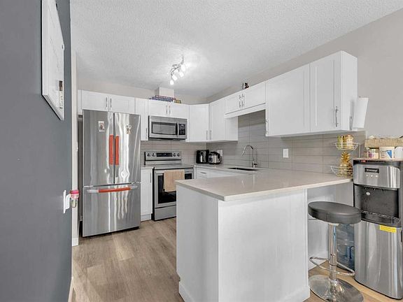 Affordable 3 bedroom bungalow townhouse featuring an updated main floor with vinyl plank flooring in the living room, hallway & kitchen. A modern kitchen renovated just 3 years ago with white cabinetry, quartz countertops, and it has stainless steel appliances including a new dishwasher in 2022. The dining area has sliding glass doors to a small deck with a mature spruce tree backdrop, perfect for enjoying morning coffee. There are two bedrooms and a full bathroom on the main floor. The fully finished basement offers a spacious family room, a third bedroom, 3 piece bathroom, and laundry/storage area. Other updates include a high efficiency furnace (2022). Comes with two parking stalls and additional street parking out front. Condo fees of $347/month include water, sewer, garbage, snow removal, landscaping, reserve fund, professional management and more.